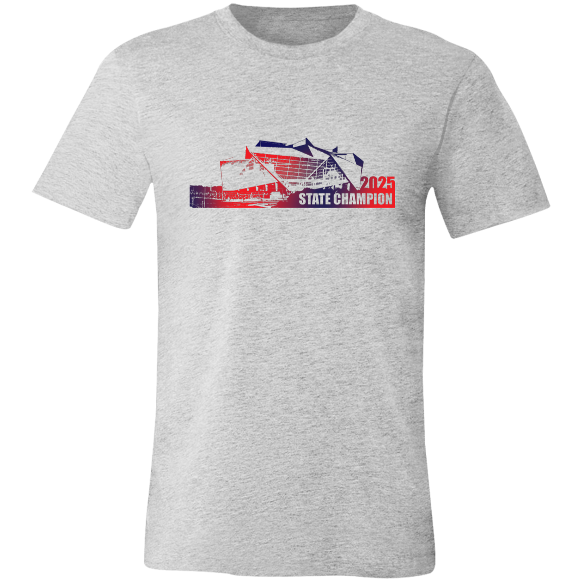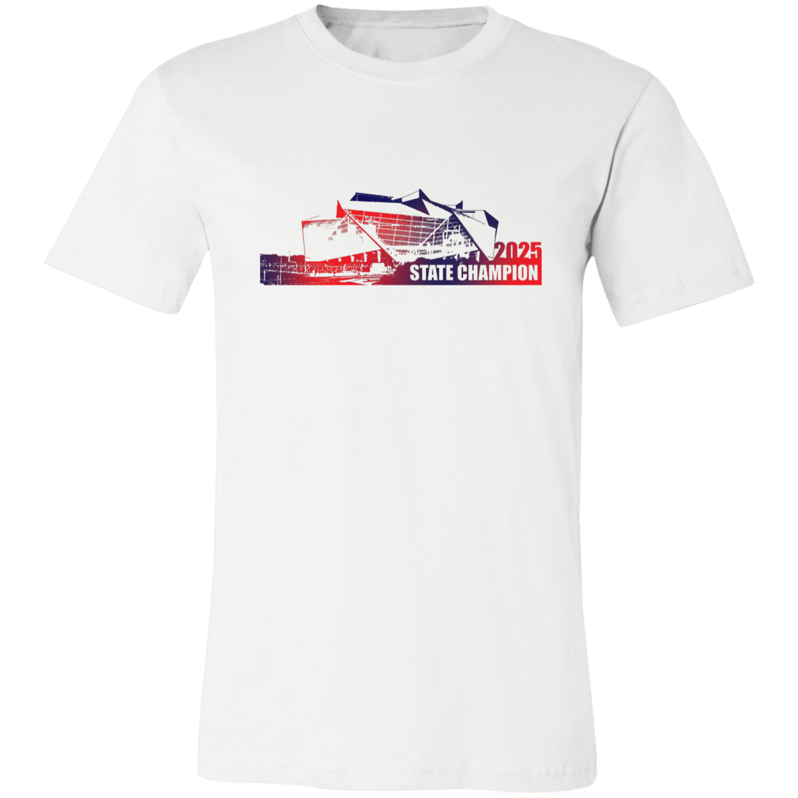 As a clean, iconic tribute to where championship memories were made, this design features an outline of Mercedes-Benz Stadium, home of the GHSA football state championships, paired with Sandy Creek High School’s 2025 State Champions pride. If you want a more subtle, modern look that still celebrates the Patriots, this stadium-outline tee is the one.